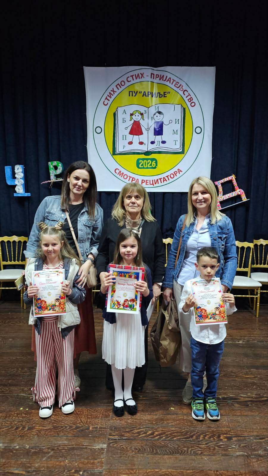 У Ариљу је данас одржана и окружна смотра рецитатора за предшколце „Стих по стих – пријатељство“, на коме је треће место освојила Наталија Нешковић, што је још један доказ да љубав према лепој речи почиње од најранијег узраста.