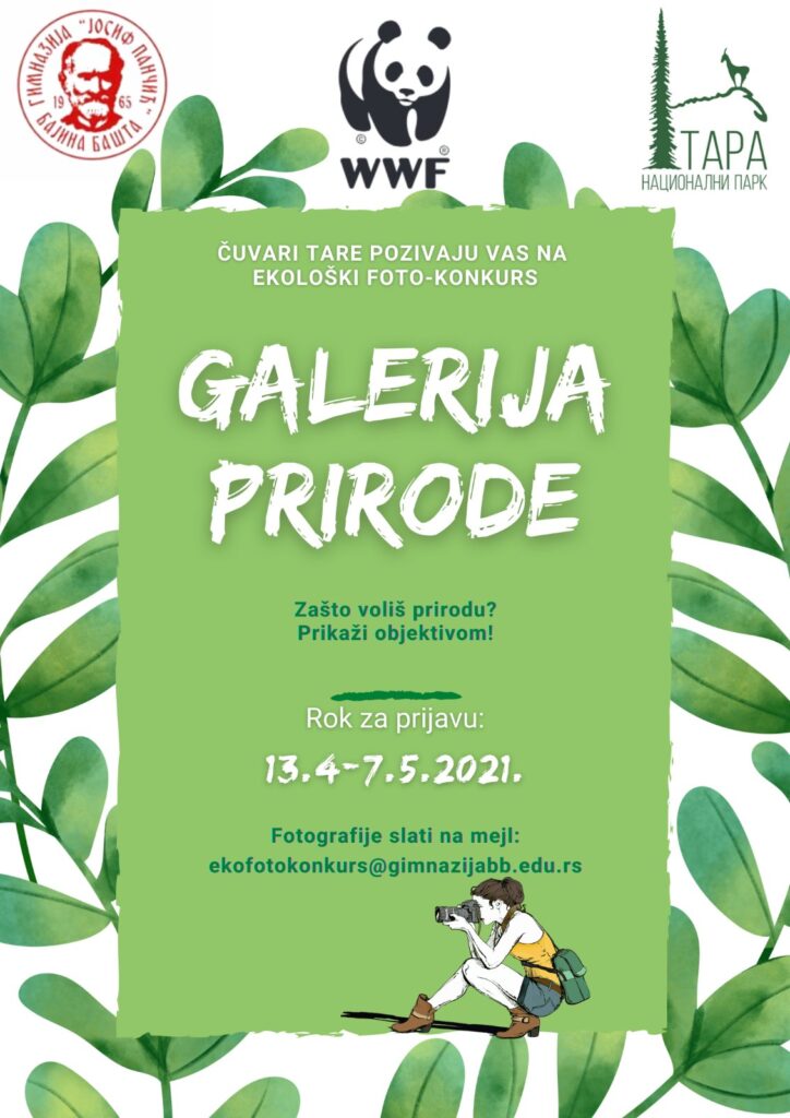 Пројектни тим Гимназије „Јосиф Панчић“ Чувари Таре у сарадњи са WWF и Националним парком „Тара“ организују фото конкурс „Галерија природе“. Тема фото-конкурса су фотографије природе и однос друштва према њој кроз објектив ученика. 15 најбољих фотографија, према оцени стручне комисије, биће изложене у галерији гимназије у мају а три најбоље фотографије биће и симболично награђене.