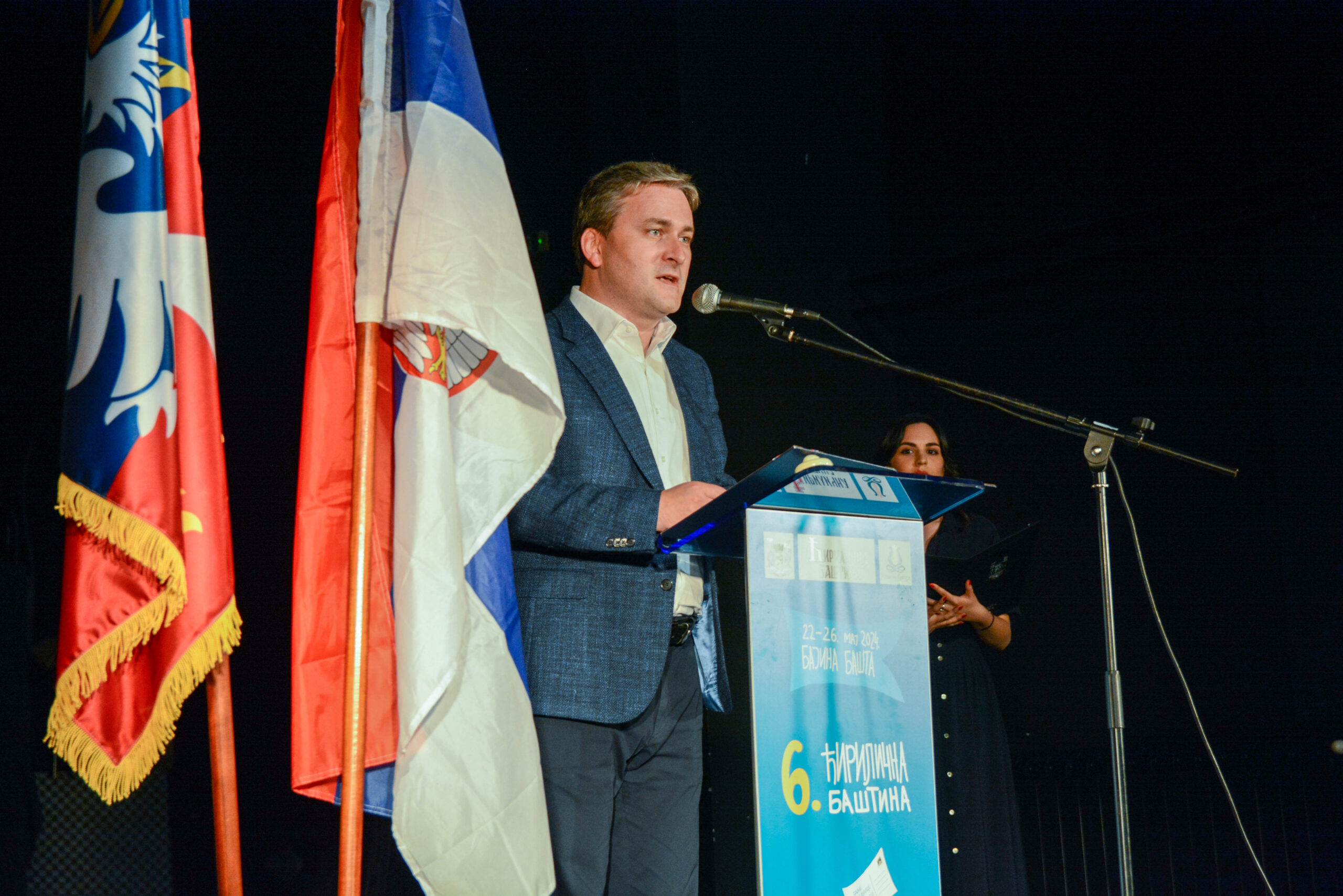 Добродошлицу су присутнима упутили Милован Јездић, директор Установе „Култура“ и Синиша Спасојевић, председник Организационог одбора манифестације. Весна Ђурић, председница општине, је истакла задовољство што је Бајина Башта данас на културној мапи Србије препозната и по манифестацији „Ћирилична баштина“ која сваке године постаје све богатија по програмским културним садржајима. Председница се захвалила и министру Селаковићу и Министарству културе за подршку у напорима за очување ћирилице и културног идентитета нашег народа. Она је потом министру Селаковићу предала и захвалницу. Програм отварања манифестације „Ћирилична баштина“ својим наступом посебно су обележили и КУД „Јелек“ и КУД „Миленко Топаловић“ као и наша млада суграђанка Нина Павловић, која је на самом почетку отпевала државну химну.
