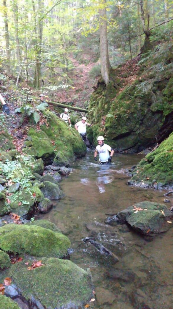Прва теренска акција је реализована у суботу, 6. октобра у кањону Раче. За акцију је био заинтересован велики број наших чланова, али смо број морали ограничити на 12 учесника, због специфичности терена и техничких капацитета клуба. Уз коришћење непренских одела омогућено је безбедно кретање кроз изузетно хладну воду, а коришћењем опреме набављене кроз претходне пројекте, као што су сигурносни шлемови, алпинистички појасеви, импрегнирана кањонинг ужарија, карабињери и дисендери омогућено је сигурно спуштање низ стрме литице и водопаде. Екипа је успешно спровела акцију и привела је крају у предвиђеном временском оквиру. Напоменуо бих да је познат податак да је у прошлом веку, пролазак кроз кањон Раче био део завршног испита за припаднике краљеве гарде.