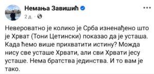 Примећујемо да у текстовима у којима критикујете Завишићеву изјаву, опет атакујете на председника Србије Александра Вучића и бавите се унутрашњим проблемима Србије.