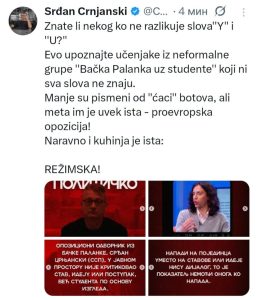 Опозициони одборник Срђан Црњански на мрежи X објавио је фотографију студента уз коментар: