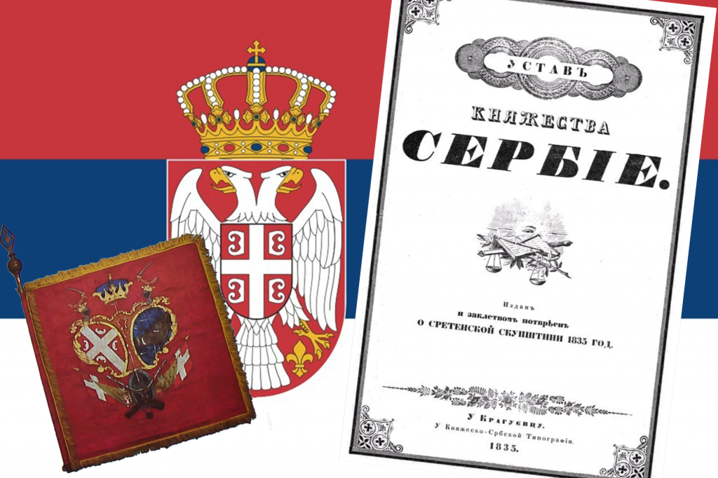 Такође, 15. фебруара 1835. године у Крагујевцу донет је Сретењски устав, први устав нововековне Србије, један од најдемократскијих и један од првих устава у Европи. Овај документ неће дуго опстати због међународног притиска на младу кнежевину, али ће имати огроман значај и остати упамћен као један од најлибералнијих устава које је Србија имала. Тако модеран устав написао је лекар и дипломатa Димитријe Давидовић, кога ће историја запамтити, пре свега, као првог српског новинара.