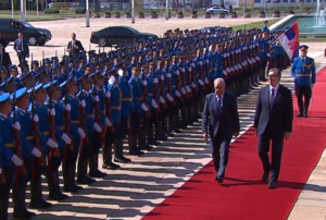 Председник Вучић свечано је дочекао председника Швајцарске Конфедерације Гија Пармелена испред Палате Србија уз све државне почасти – интонирање химни, црвени тепих и почасну смотру Гарде после чега се швајцарски председник наклонио српској тробојци.