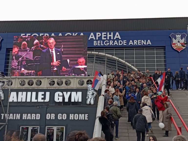 Арена је већ пуна људи који су дошли на велики скуп, а колико је велики одзив најбоље сведочи да је и даље огроман број људи испред.