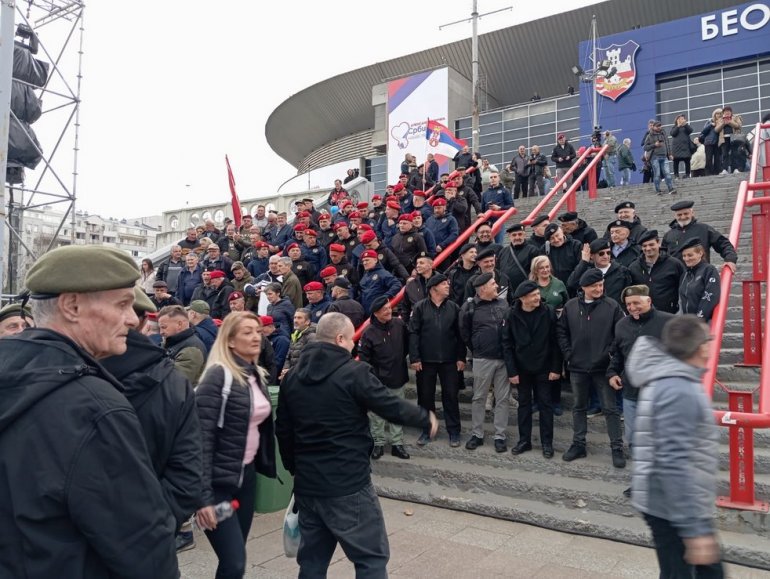 Испред Београдске арене у којој се данас одржава велики митинг СНС су и наши ветерани.