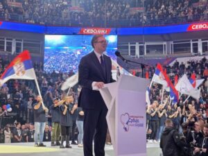 – Пре годину дана кад сам рекао да смо победили те нападе, готово ми нико није веровао. Ја сам знао да се нешто преломило у људима у оном тренутку кад су схватили да нам је држава нападнута и да само преостаје стрељање. Једино што им је био програм било је „пливаћете, гонићемо вашу децу, тући ћемо вас“. Ми то њима никад нећемо да нудимо, нудићемо нове и обновљене школе и вртиће, пруге, возове и аеродроме, да заједно са нама раде на напретку и бољитку Србије. Свет се променио драстично и драматично. Од 2020. кад престаје ера глобализма, свакога дана свет се мења и многи од нас то не желимо да видимо. И верујемо да ћемо сутра да се вратимо у неки период пре 10, 20, 30 или 50 година, неће се то догодити.Ми смо војно неутрална земља и остаћемо. То није лако. Што се нас тиче, наш је избор да будемо слободна, суверена земља, да не будемо део ниједног војног пакта, да сами чувамо своје небо и своју земљу. И као такви морамо да будемо довољно снажни да одвратимо свакога од потенцијалне агресије на нашу земљу. Мало ко ми је веровао кад сам причао шта треба да радимо за то. Данас је Србија снажнија у војном погледу него икада у својој историји. Ми никог нећемо да нападамо, свакој мајци у овој земљи хоћу да обећам мир и стабилност. Немамо деце за бацање, хоћу децу да планирају своју будућност у овој земљи, да раде овде, да се поносе својом земљом, али за то морамо да будемо јаки и бићемо још јачи. На њихове претње, када формирају савезе ми ћемо увек сталожено да одговарамо и да кажемо „ми вас поштујемо, немамо ништа против вас, нећемо да вас нападамо“, али једино што можемо да кажемо „Србија је тврд орах, а тврд орах је воћка чудновата, не сломи га, али зубе поломи“. Ми ћемо да радимо свакога дана напорно на подршци нашем народу на КиМ. То је наш народ, наша земља и по Међународном праву, и повељи УН и Уставу Србије и нико не може да нам га отме и можете да говорите и радите шта вам је воља ви светски вође, али увек морате да знате да никада никога у Србији нећете наћи ко може да се одрекне своје колевке. Хвала нашем народу свуда где живи на КиМ, чували су нам отаџбину увек кад је било најтеже и знам да ће то увек да раде. Чуваћемо мир, стабилност и братске односе са Бошњацима који овде живе, као и свугде на Балкану. То је наш задатак и наша обавеза. Наша политика мира, безбедности и стабилности је политика земље која се налази на европском путу. Пре четири године смо показали да смо самостална земља и нисмо хтели да се одрекнемо пријатељства. Знамо ми шта су санкције. Једини смо који нису уводили санкције Русији и који не одустају од пријатељства са својим традиционалним пријатељима на истоку. Градимо односе са Кином, као и са Америком. Оно што је интерес Србије, то је наша политика – изјавио је он.